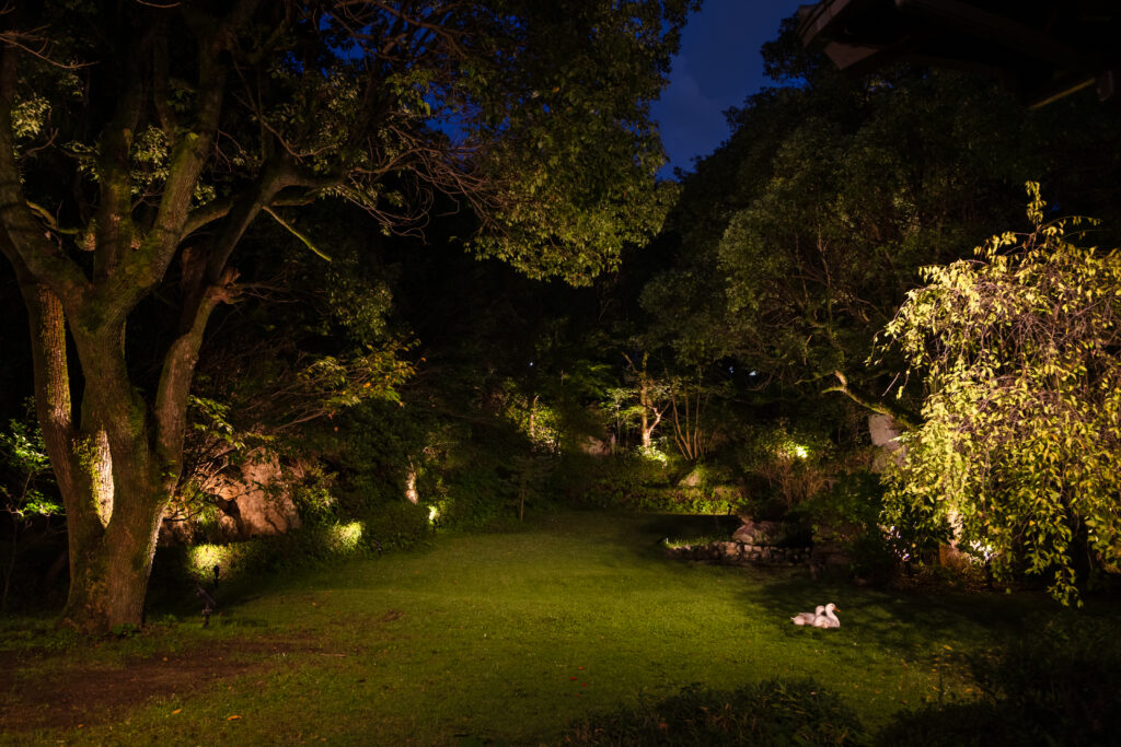 春夏秋冬、また1日の時間帯によってもさまざまにゆたかな表情を見せてくれる、四季折々にうつりゆく自然に囲まれたプライベートガーデン。挙式やフォトウエディングなど、さまざまにご利用いただけます。夜はライトアップしたお庭をお楽しみいただけます。