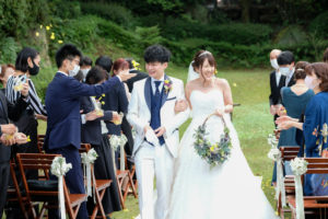 挙式は天気にも恵まれ当日はガーデンウェディング